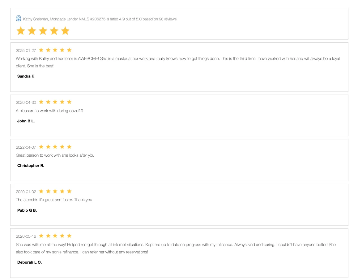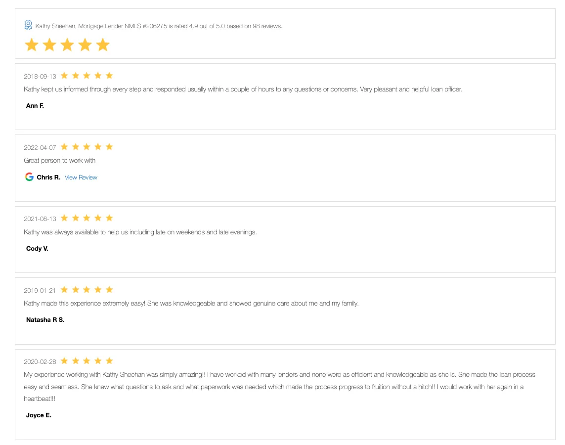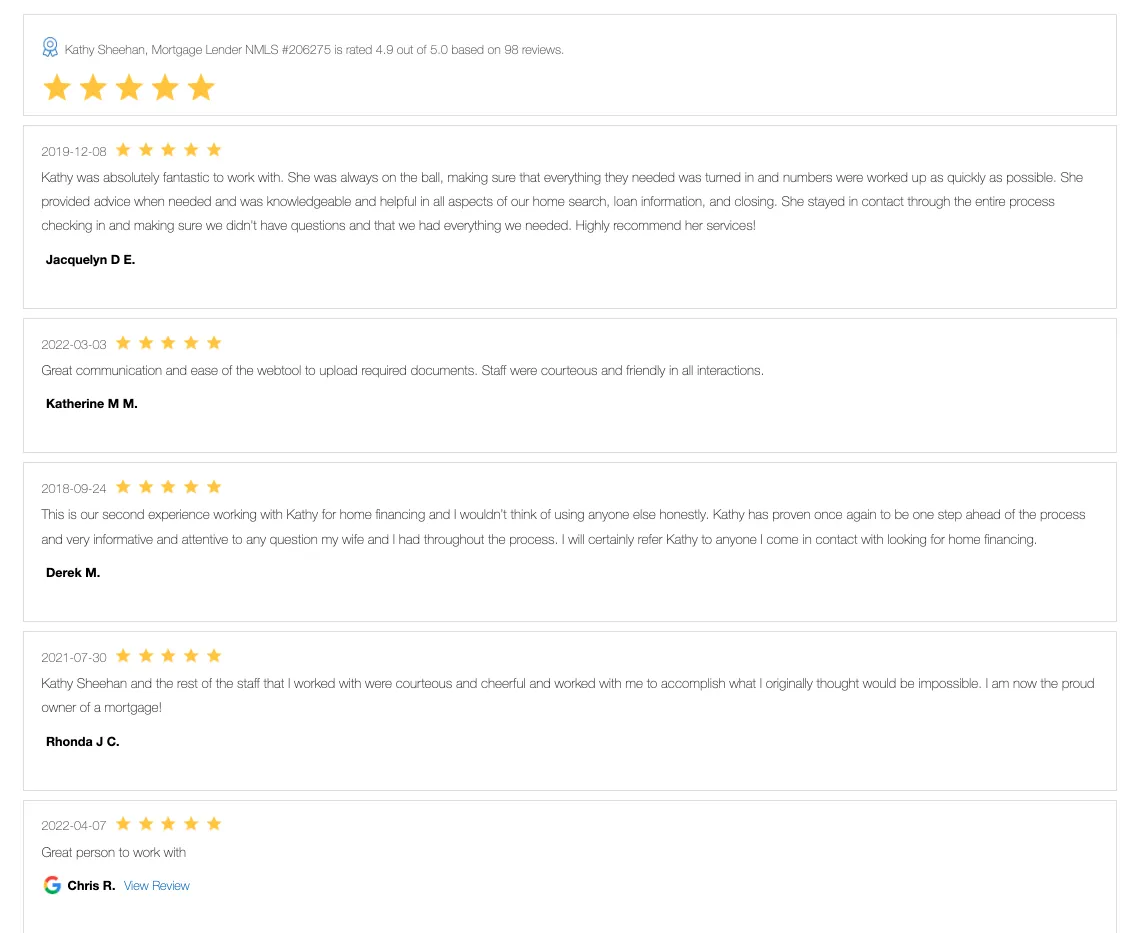 Kathy Sheehan offers personalized service and loan options you'll love. We shop multiple lenders to find the best rate and product for you, getting you into your dream home faster.