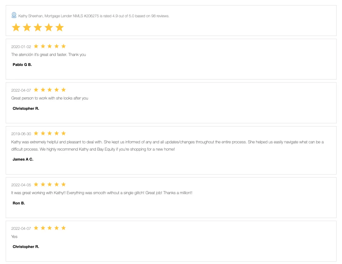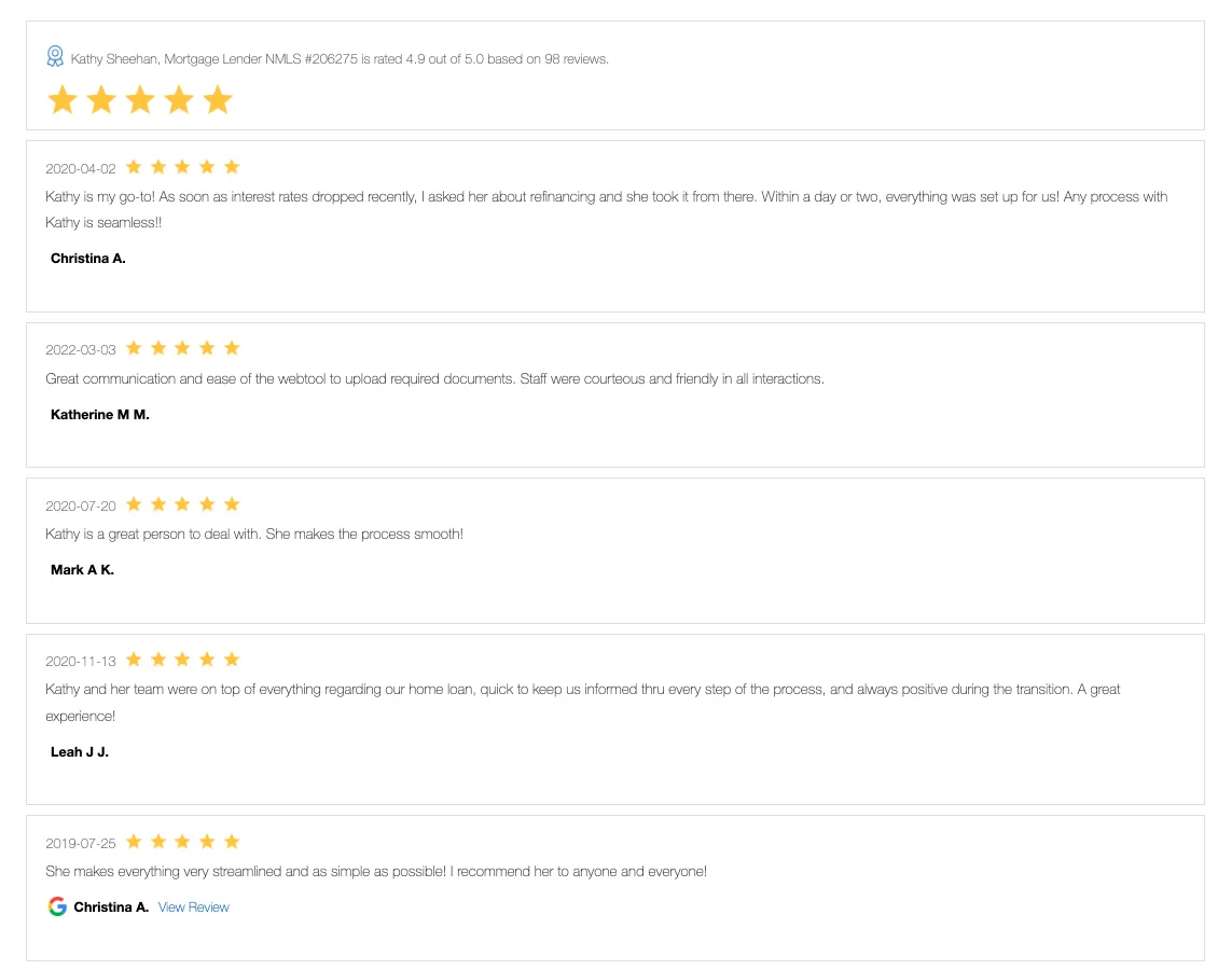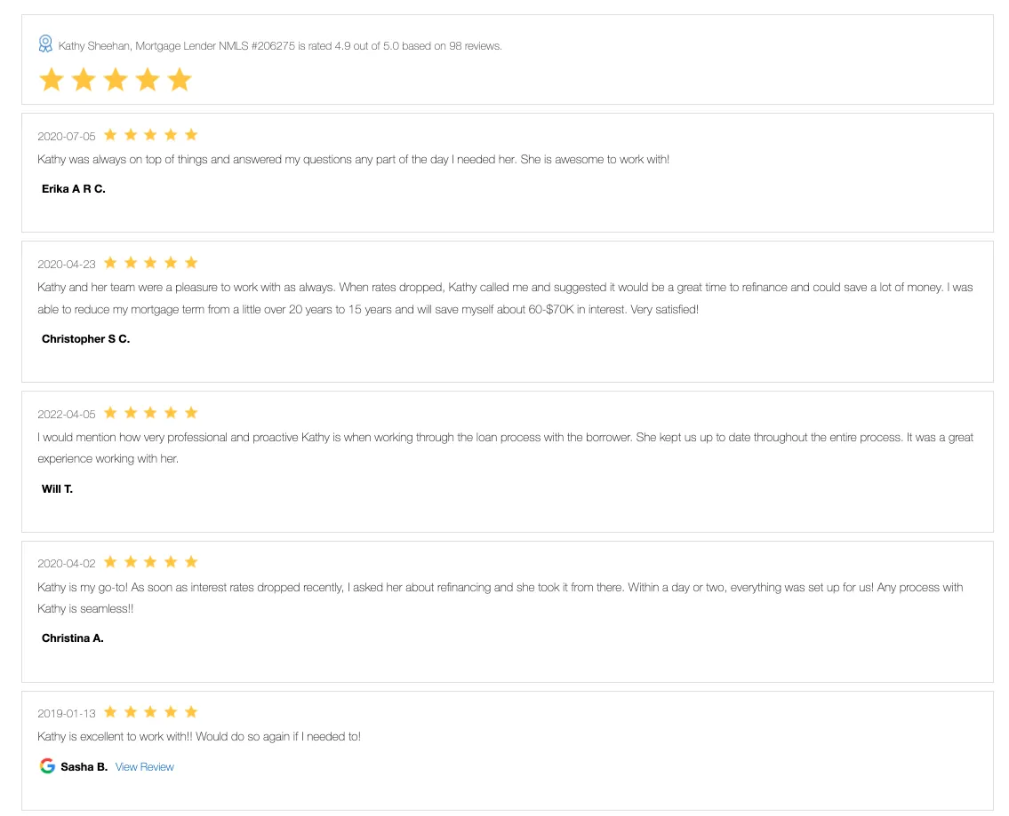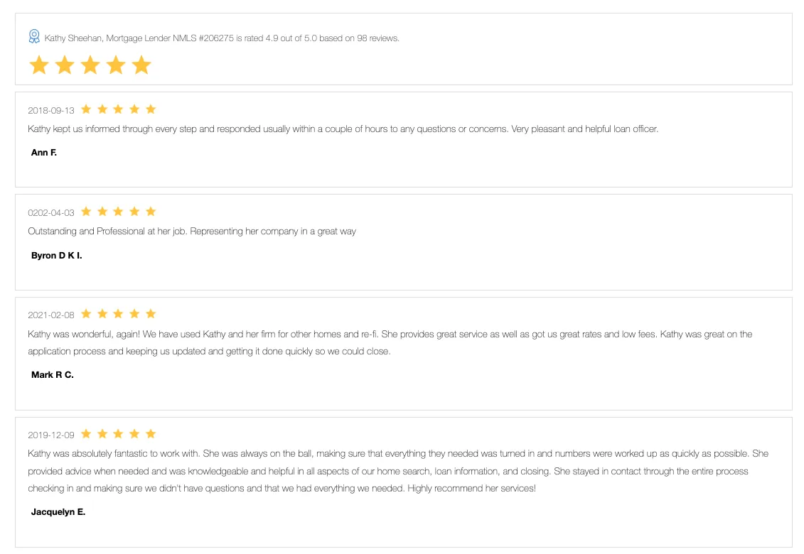 Kathy Sheehan offers personalized service and loan options you'll love. We shop multiple lenders to find the best rate and product for you, getting you into your dream home faster.